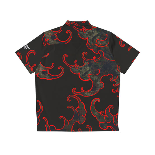 Button Down Shirt Red Great Wave Camo
