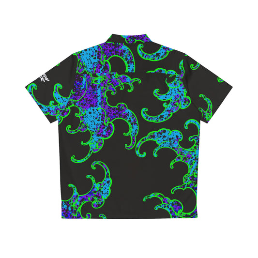 Button Down Shirt Blue Great Wave Camo